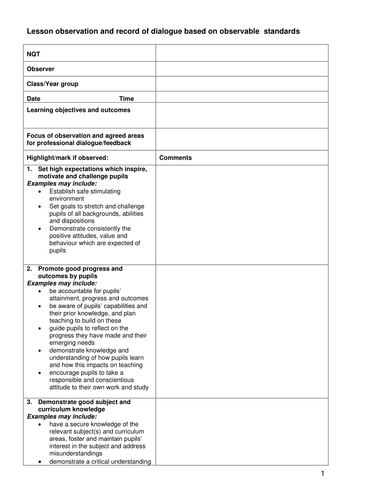 Lesson Plan Template For Teacher Observation / Lesson Obs -New Teaching Standards by welshwizard ... / There is a pdf version.. The lesson plan serves as the educator's guide in determining what to teach their students and when. ¨ read this form and the detailed description of teacher standards outlined in the step by step teacher standards for preschool and primary. The plan encourages teachers to stretch and to take risks while flourishing professionally in an atmosphere of support and mutual trust. Before you plan your lesson, you will first need to identify the learning objectives for the lesson. Below are different lesson plans for teachers.